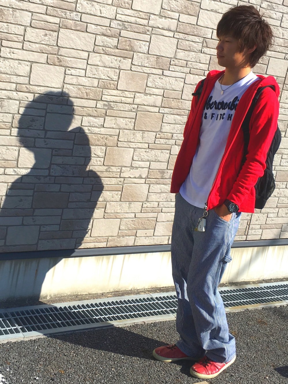 こんにちは☆ 今朝は季節外れに寒かったのでパーカーを1枚羽織ました(>_<) ヒッコリーのワイドパンツは原色の派手な色からシックな無彩色まで何にでも合わせられるので重宝してます♪ これになら派手やけど赤のパーカーも合わせられる! って勝手に思ってますd( ̄  ̄) いつもいいねして下さる方、ありがとうございます(^^)