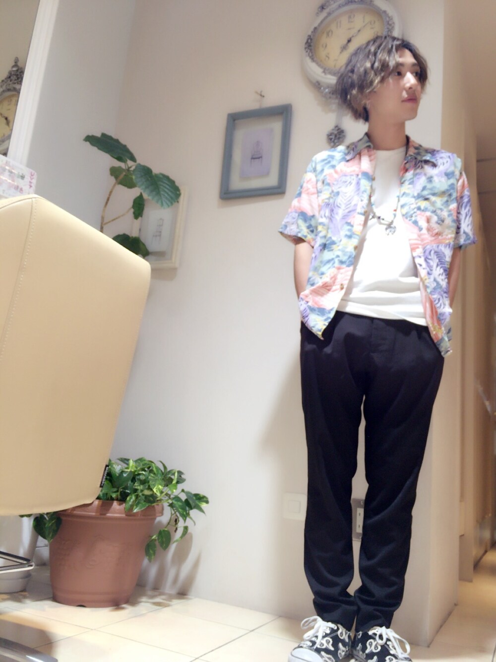 夏っぽく♪ スラックスは地元宮崎の セレクトショップで購入!