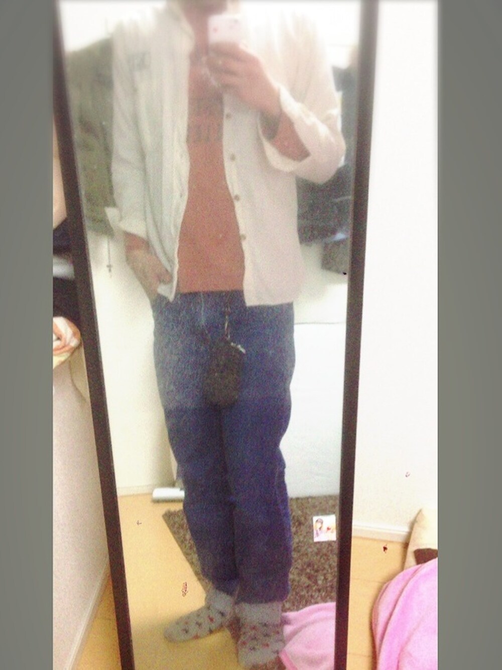 vintage古着っぽく。 赤を差し色に、春意識。 シャツ used Tシャツ BARNS デニム Levi's517/used