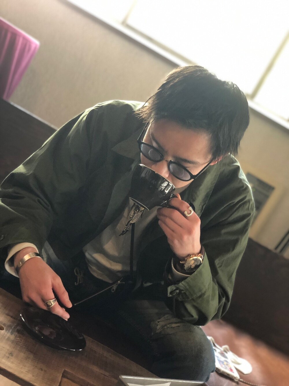 𓆉𝑅𝑌𝑈𝐻𝑂𓆉のサングラス「『SILVER BULLET SELECT AC/シルバーバレットセレクト』UVプロテクトカラーレンズサングラス&だてメガネ」を使ったコーディネート