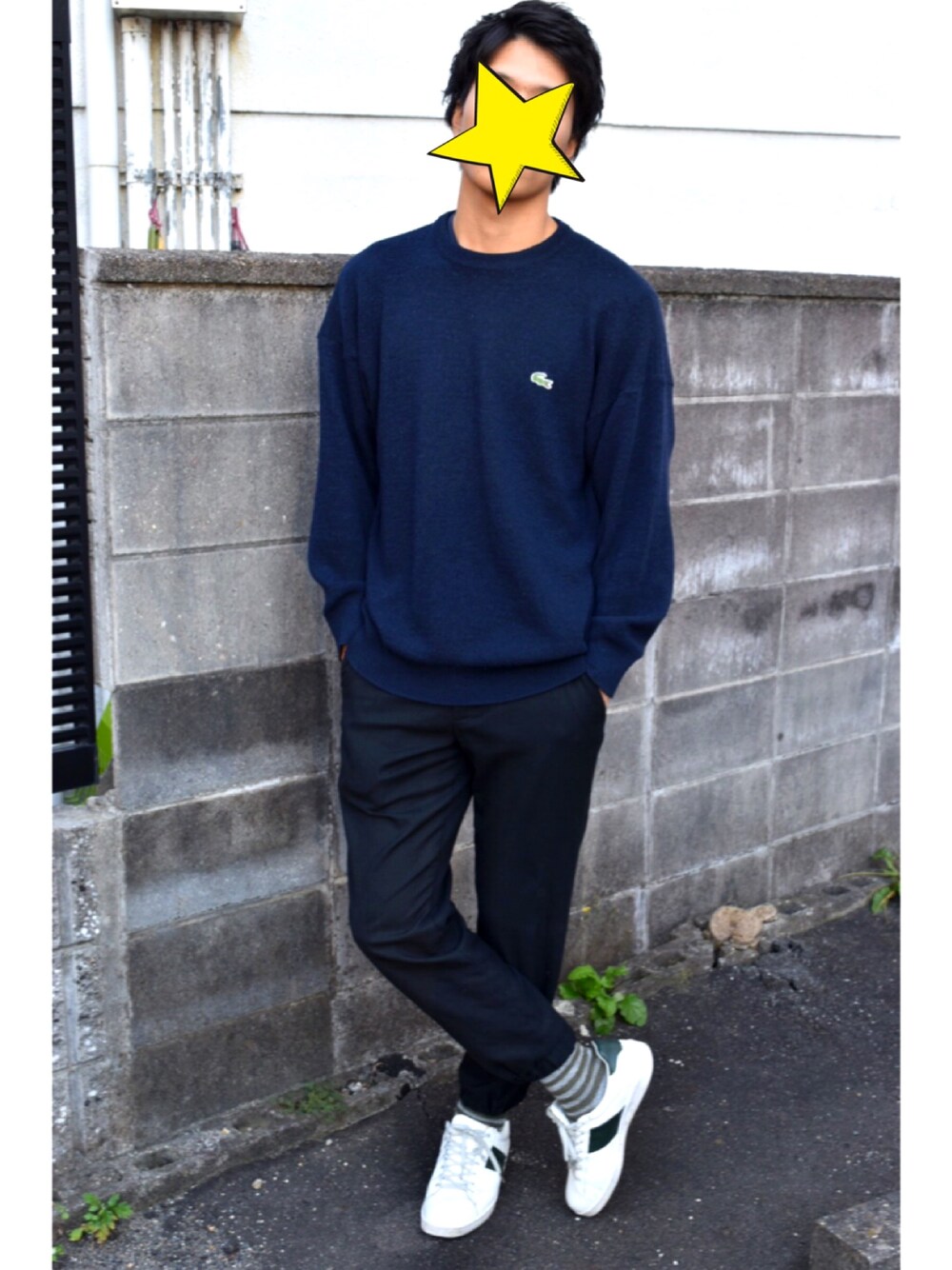 今日は暖かかったのでコートなしでした! LACOSTEのニットは古着屋さんで買いました。マークが緑なので靴と靴下の緑と合わせてます。 ロングのコートとかも合いそうですよね😊
