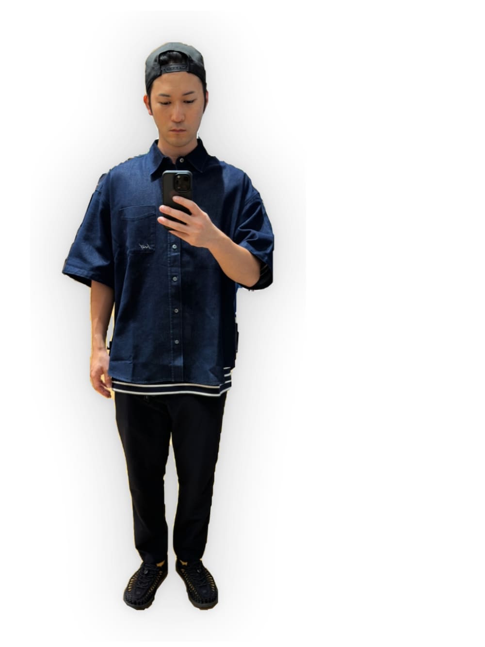ryuのシャツ/ブラウス「【HECT】Big Regular collar Logo S/S Denim Shirt / ビッグシルエットレギュラーカラー半袖デニムシャツ」を使ったコーディネート