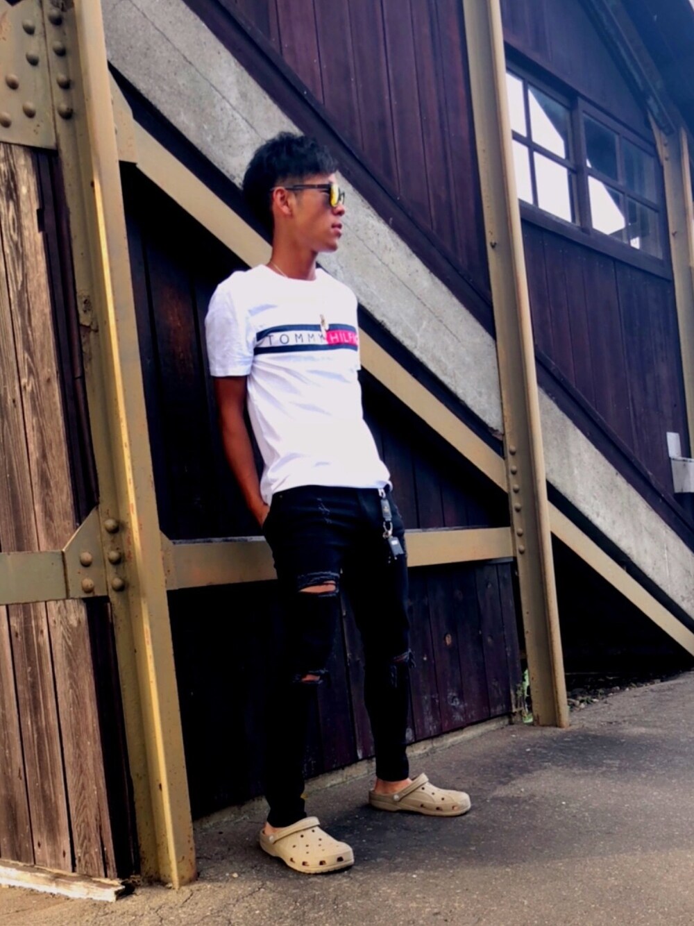ずっと下書きにしてて投稿忘れてました! 夏の暑い日に…ダメージパンツと白Tシャツのお堂コンビ!