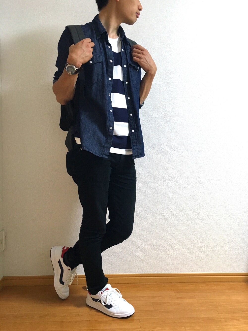 今日はこんな感じ 靴とボーダーシャツは昨日買ったもの それ以外は持っているもので組み合わせました 羽織ってるシャツはデニム柄の長袖なんですが、今日これ着て行ったら職場の人に「暑苦しい」と言われてしまいました... もうこういうのは着る時期過ぎたんですかね(°_°) そしてなんか微妙だねって言われたので、自分のセンスのなさに落ち込んでるところです なにか気になることありましたらアドバイスお願いします...!!