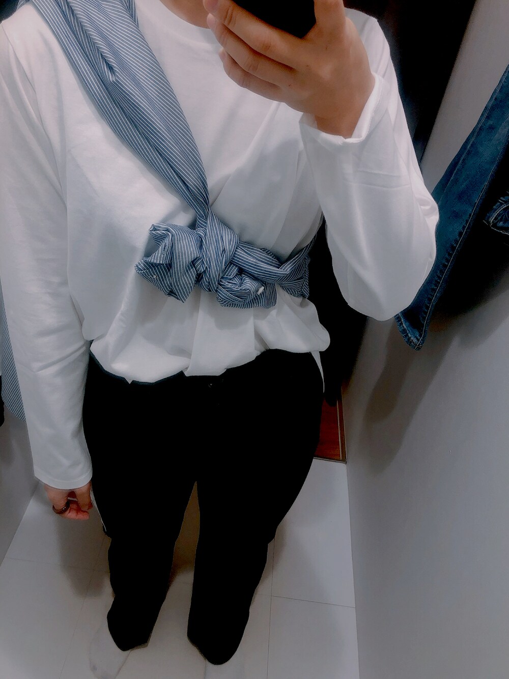 ALL UNIQLOコーデ フレアハイライズジーンズ 超おすすめです🙆♀️ ・標準丈が73で統一されているところが良い! (GUのフレアジーンズと比較して、いつものボトムスのサイズで購入すると、丈が長くてひきづるなんてことがないし、丈長め短めの商品もあって選べる!!) ・程よいフレアで脚長効果! (ストレートに近いフレアジーンズになってるので、太ももの形が強調されにくく、スラっとした印象にしてくれます!足先がもう少し広がる感じが好きな方はGUのフレアジーンズをおすすめします!!) 商品詳細 スムースコットンシャツテールT 00 WHITE コットンツイルストライプスタンドカラーロングシャツ 68 BLUE フレアハイライズジーンズ 08 DARK GRAY
