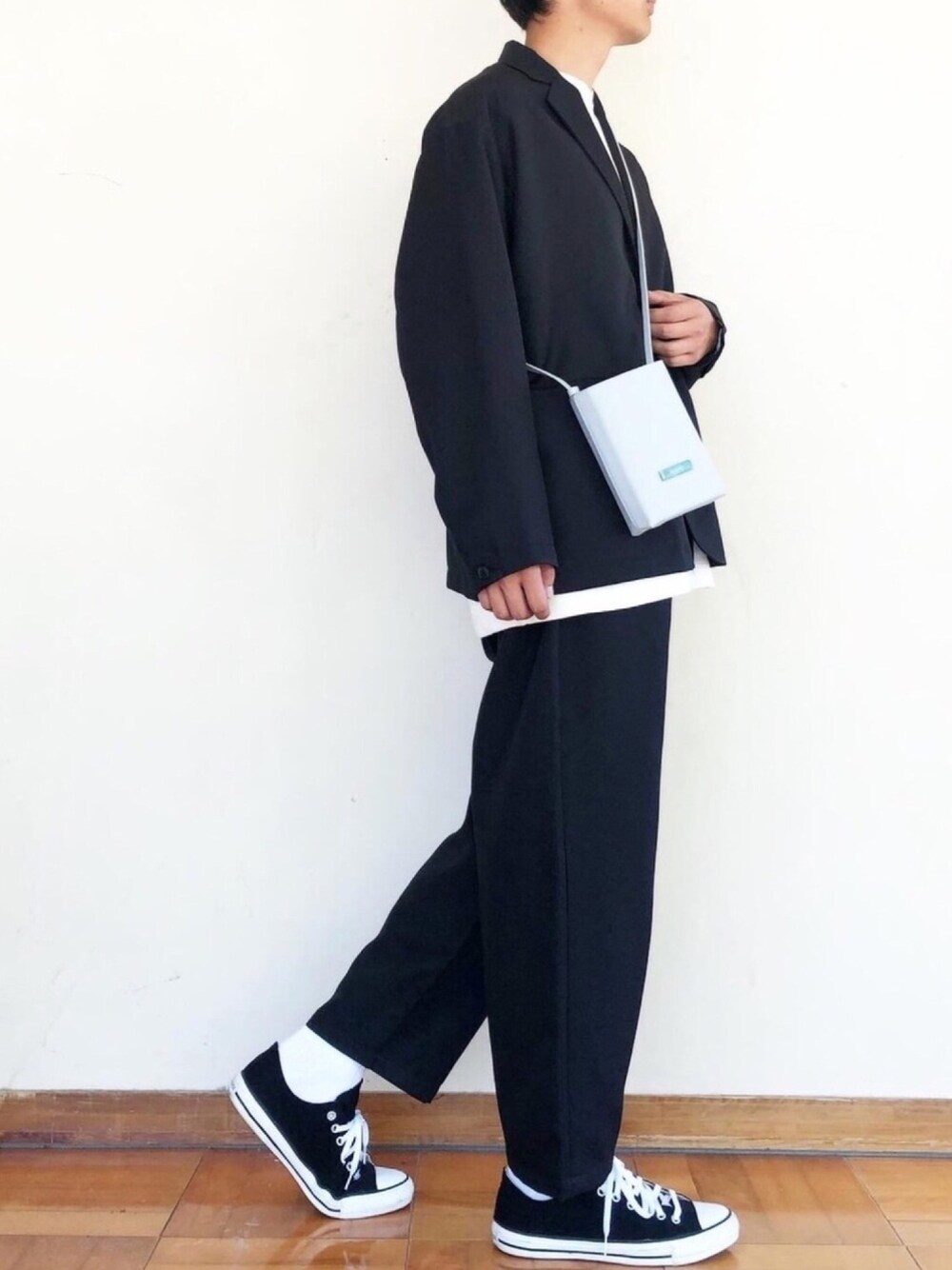 見てくださりありがとうございます 人生初セットアップに挑戦しました✨ フリークスストアのセットアップです 靴を革靴じゃなくてスニーカーにすることでキメ過ぎず少しゆるいコーデにしてます 今トレンドの箱型ショルダーバッグをしてしっかりとトレンド回収! 真っ黒だとちょっと重いので、靴下を白にして、トップスもオーバーサイズのTシャツにして下から見えるようにしてます Instagramにアイテム詳細載せているのでそっちも見てください🙌 ではまた👋
