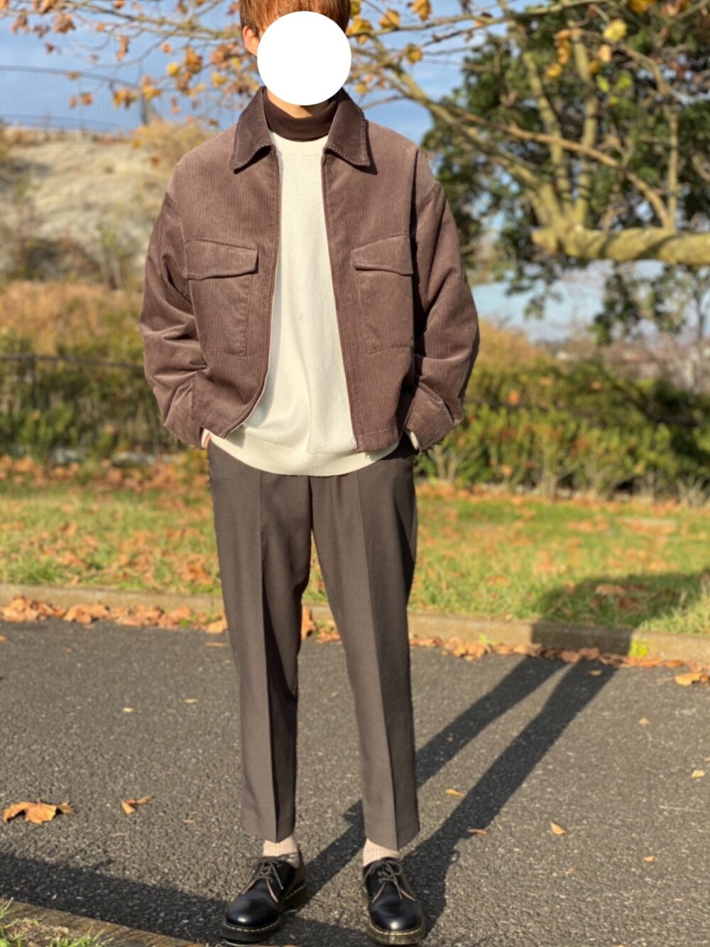 白ニットは清潔感が出るし、合わないものを探すのが難しいくらい着回しできます! アウターもトレンド色のブラウンとトレンドのコーデュロイの素材でとてもおすすめです👍 スニーカーだけでなく革靴も持っておくと秋冬は使いやすいです!👞