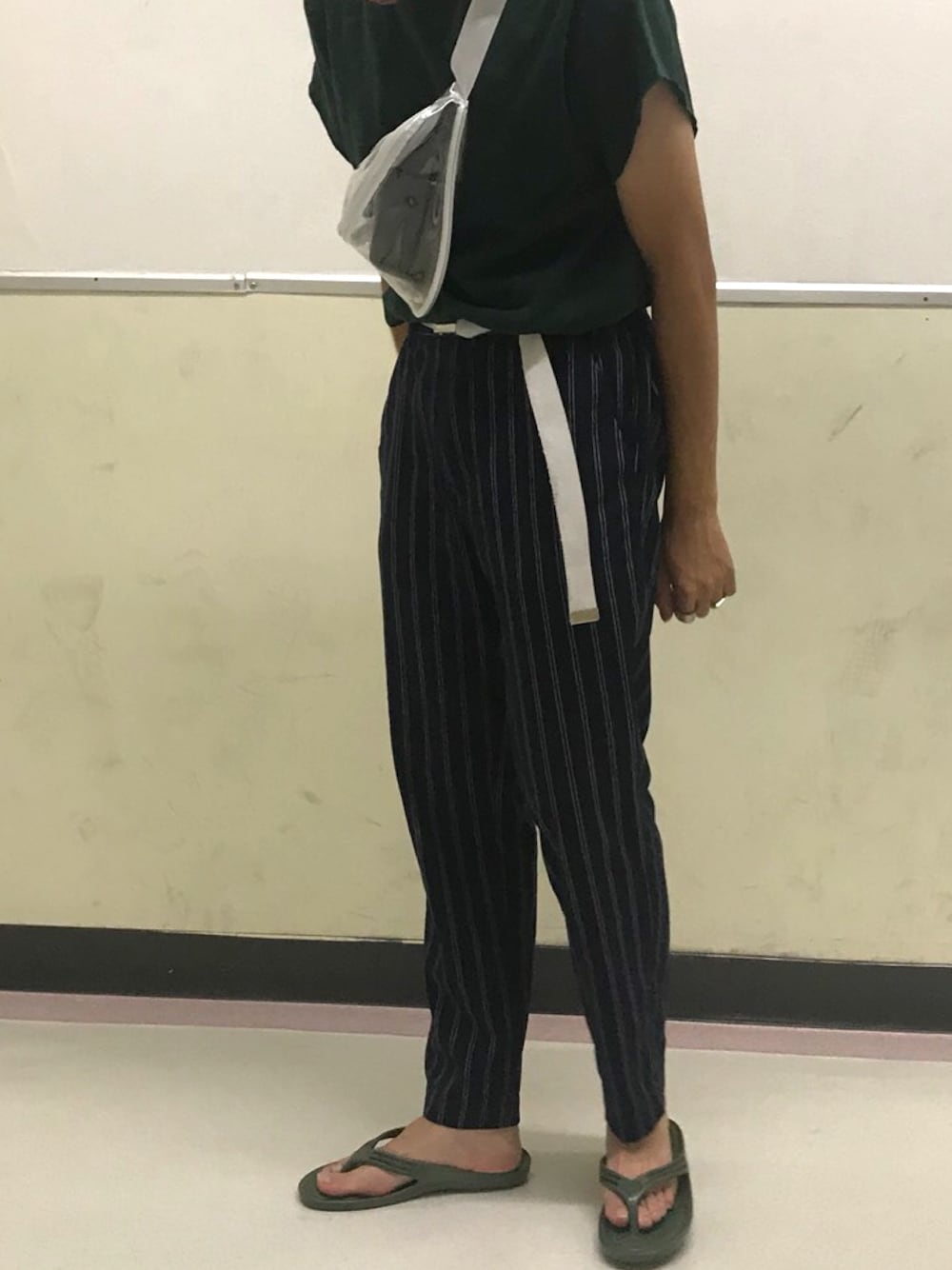 Rのショルダーバッグ「クリアウエストポーチ」を使ったコーディネート