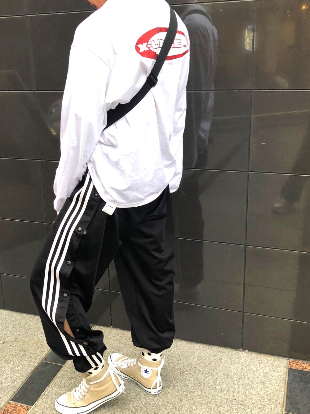 そろそろ涼しくなってきたので! このパンツは古着で、横がボタンになってるのでその日の服装に合わせて全部閉じたり、ちょっと開けたりとボタンを開けるだけでもオシャレ度あがります。 コンバースの紐は長めなので後ろでくくるのがお気に入り⭐️