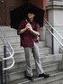 りゅんやのスラックス「TRストレッチ センタープレス ブーツカットフレアスラックスパンツ 美シルエット」を使ったコーディネート