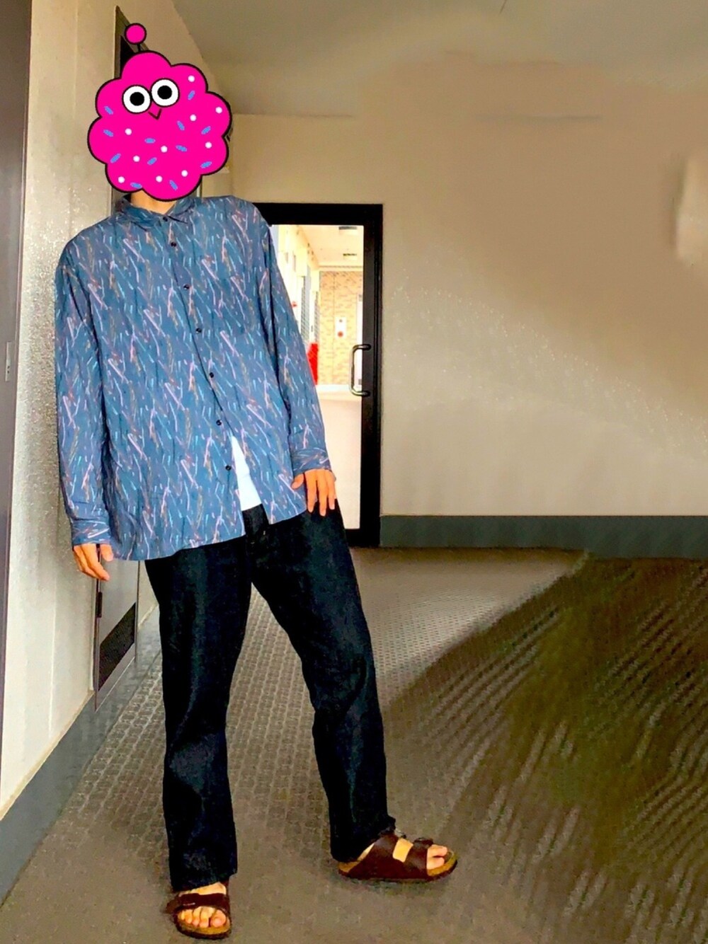 晩夏、26℃くらいの時の服装。 蒸し暑かったけど、レーヨン素材のシャツはサラリとした着心地で意外といけた。 上下ともに緩いサイズ感でやらせてもらってます。