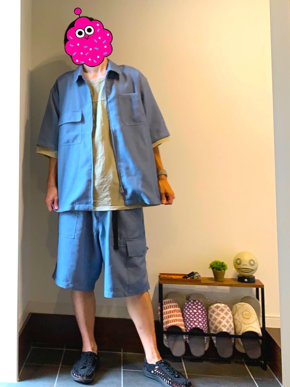 8月下旬、最高35℃/最低24℃。 インナーがデカくてトップスの袖からはみ出てしまったのですが、差し色としていいんじゃないかと思い直しそのままにしました。 如何でしょうか。