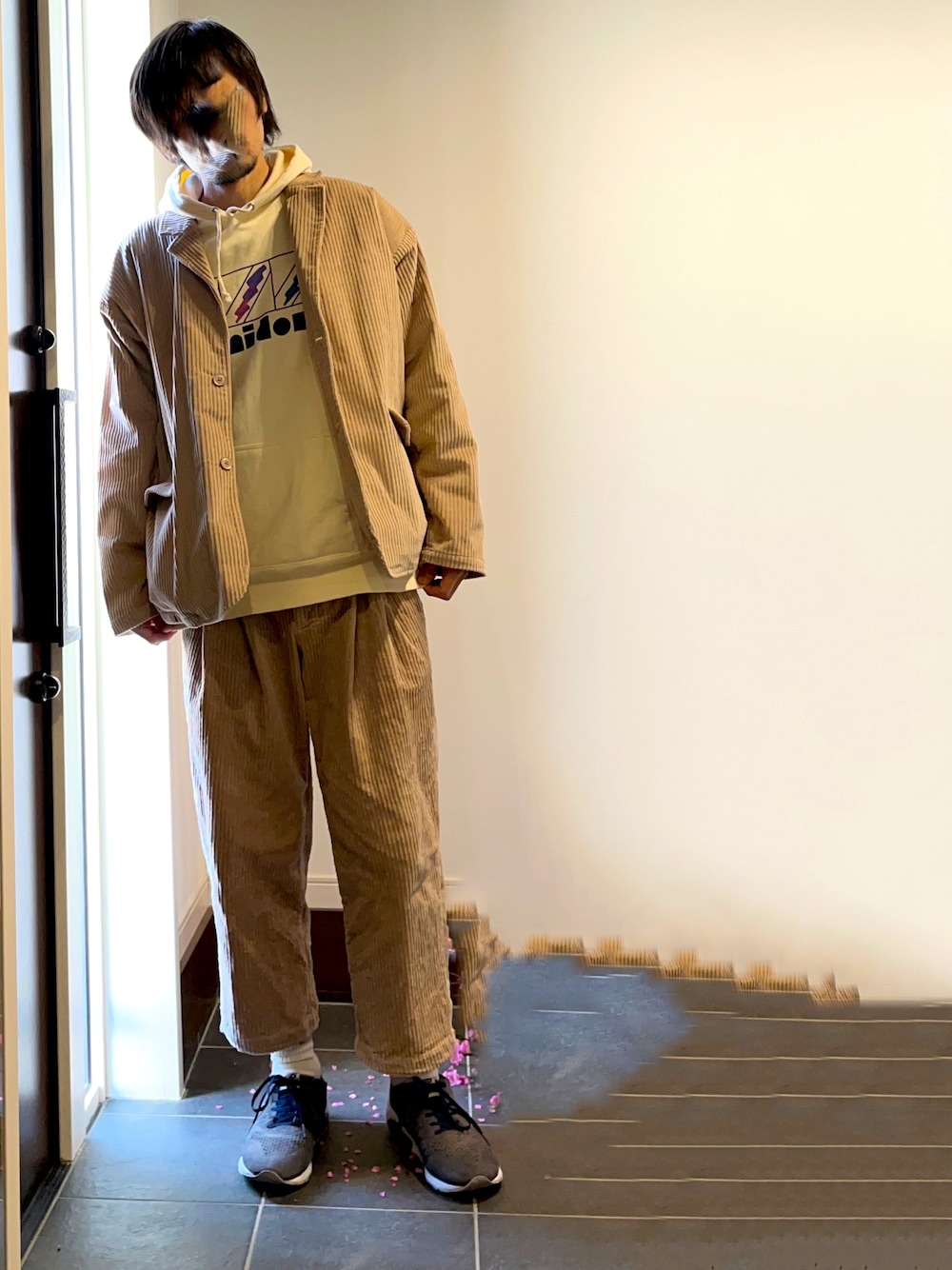 ぺちゃんこのセットアップ「古着風親子コーデュロイワイドライトシングルテーラード&テーパードパンツセットアップ」を使ったコーディネート