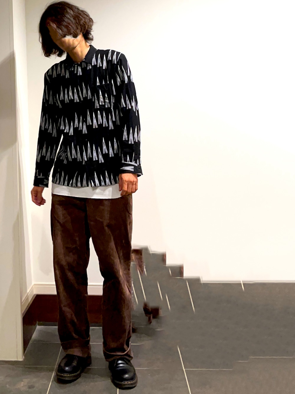 ぺちゃんこのシャツ/ブラウス「Revo. トライアングルパターン オープンネック L/S シャツ」を使ったコーディネート