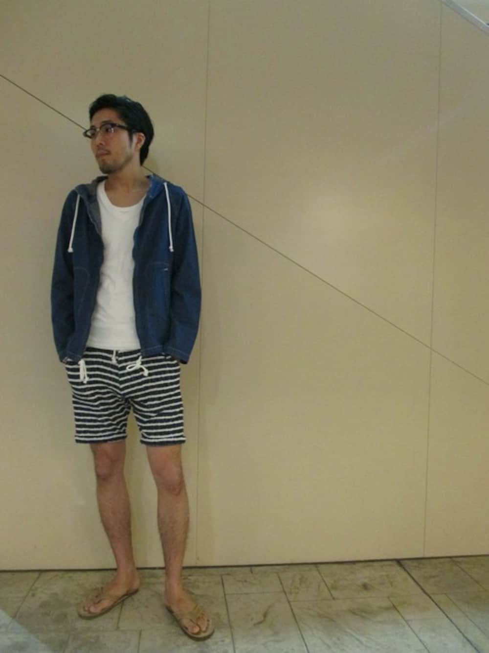今年初のショーツ!!夜はまだちょっと寒いので軽めのアウターは欠かせませんね♪ デニムマリンパーカーとボーダーショーツで海をイメージしました!