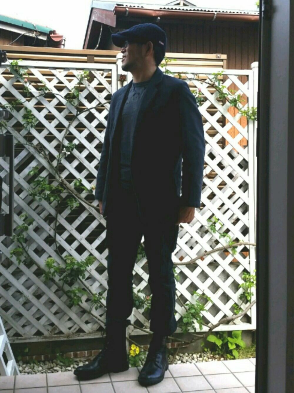 今日のコーディネートではないのですが、この前Gジャンとデニムシャツを着た時の別のコーデ上着を紺色のジャケットにしてみました。写真が暗くて黒っぽく見えますが😅