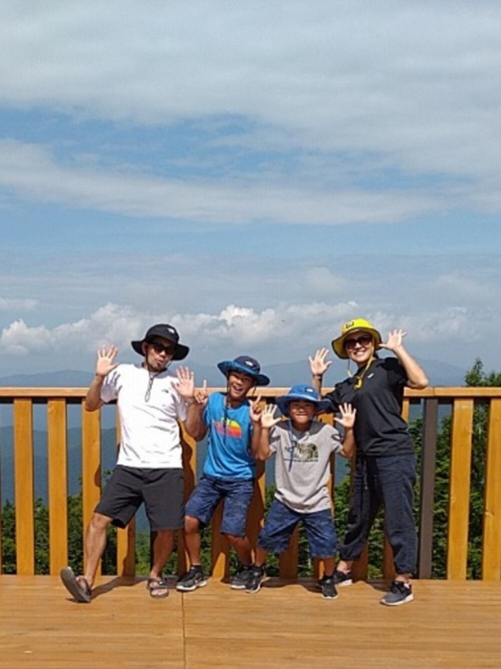 ご覧くださいましてありがとうございます😄 今日のコーデは、以前も同じようなことやりましたが、ファミリーでノースフェイスTシャツ、ホライズンハットを被ってみました✨ 今回は、夫婦と兄弟で別のノースのTシャツ、帽子の色違いにしてみました😆 以前さとみさんポーズをうまくできずにアップしてしまったので、もう一度さとみんポーズをと思っていました🤣 今回キャンプで、家族で写真を撮る機会があったので、念願のさとみんポーズで撮ってみました🤣 今回は、次男ノリノリでやってくれました😀 暑い日々が続きますが、熱中症に気をつけてくださいね😆