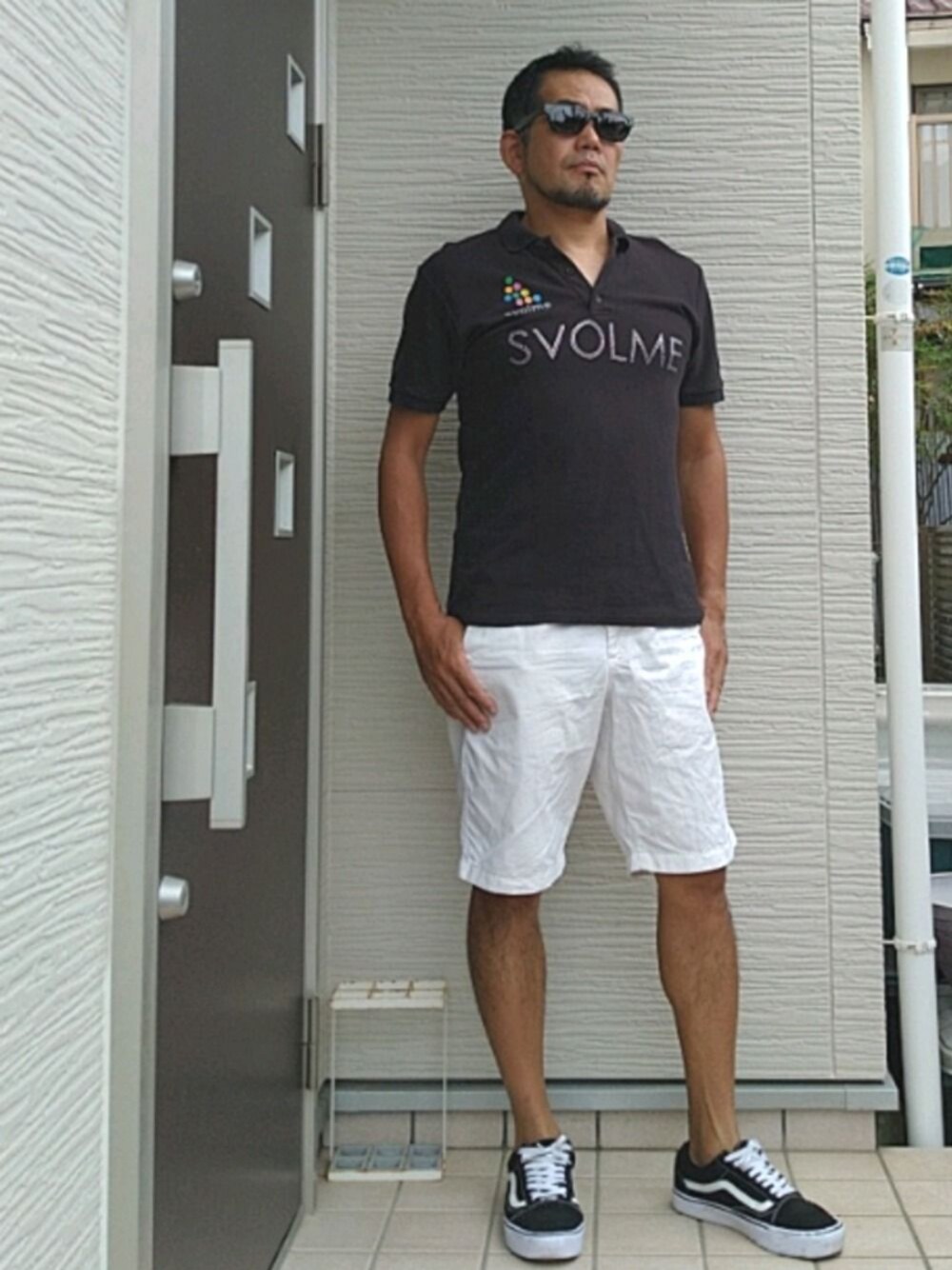 ご覧くださいまして、ありがとうございます😄 今日は、モノトーンにしてみました😄 ポロシャツは、北欧のスポーツブランドSVOLME、デザインが可愛い💕🧔🏾ので、古着で買っちゃいました😄 コワオモテおじさんの可愛いに違和感を感じてる皆さんごめんなさい🤣 ホワイトのハーフパンツは、ユニクロ、スニーカーは、VANSのオールドスクールでシンプルな感じにしてみました😎 あっという間に8月も後半😅でも暑い日が続くので、皆さん熱中症には、気をつけてくださいね😄