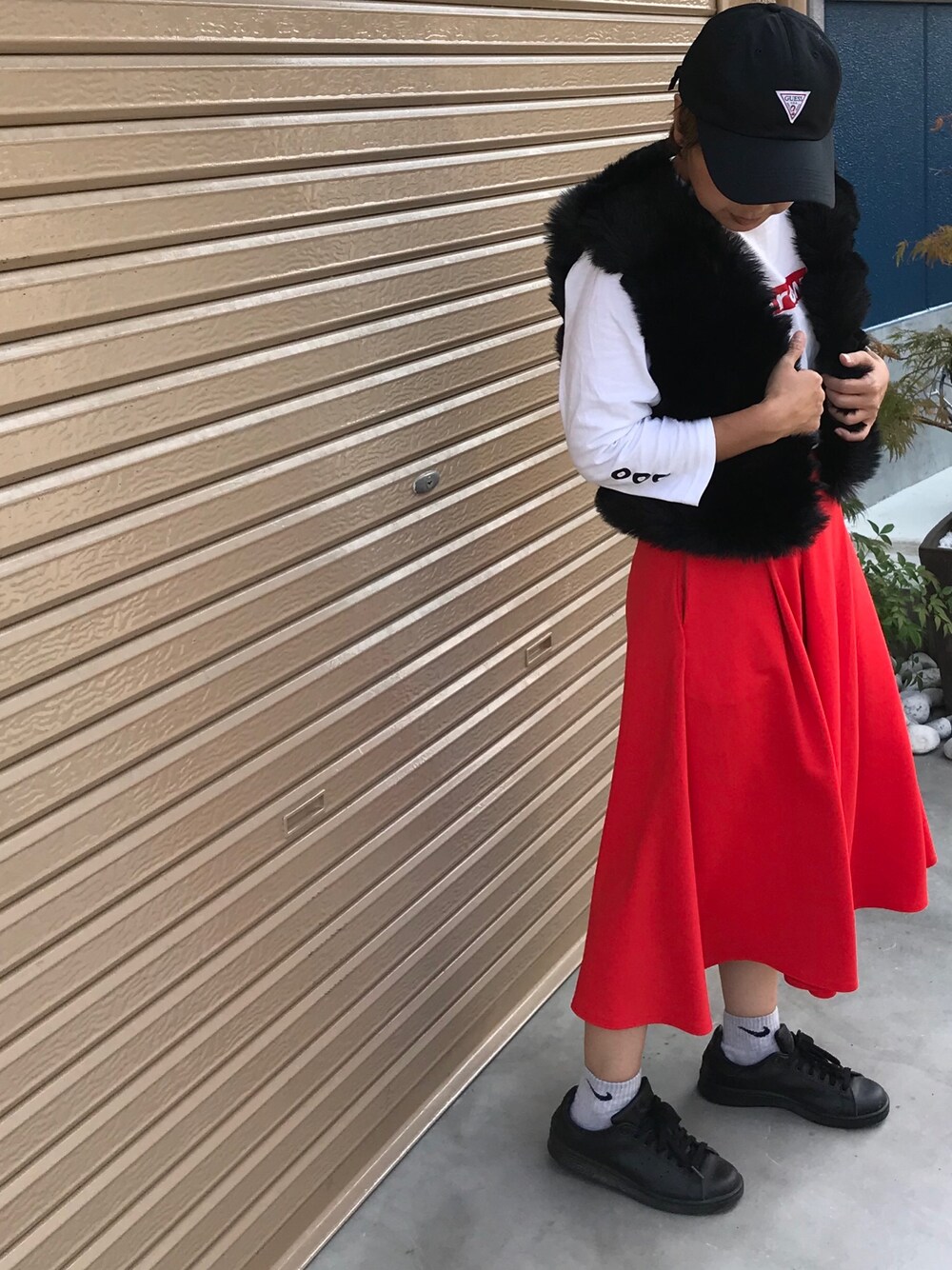 afrowのスカート「ポリエステル/ポンチタックミディロングスカート 542518」を使ったコーディネート