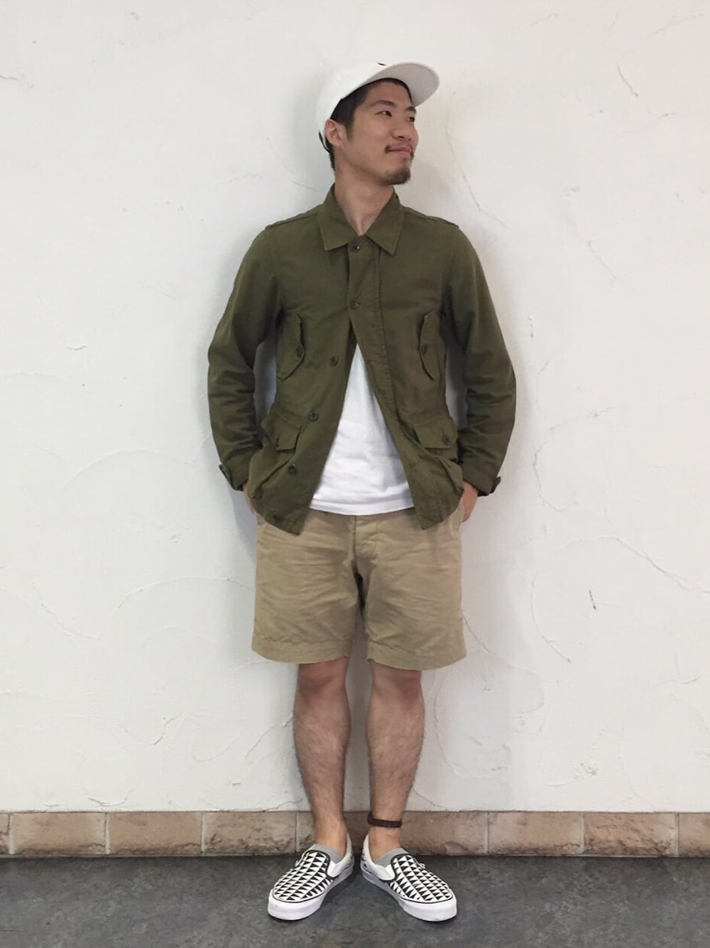 ショーツにはロングスリーブを合わせたい派! ミリタリーカラーのオリーブやカーキやベージュとホワイトの掛け合わせは好きです!