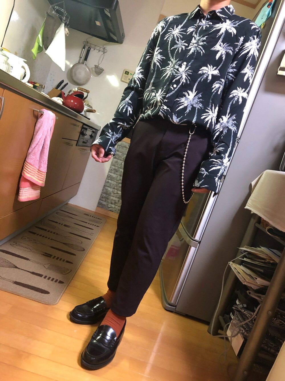 明日の服のコーデを決めてみました! 家で撮ったので少し変かもしれませんがお気になさらず🙇♂️ 高校の時に使ってたローファーを使用してみました😊 もし良かったらみてください👍