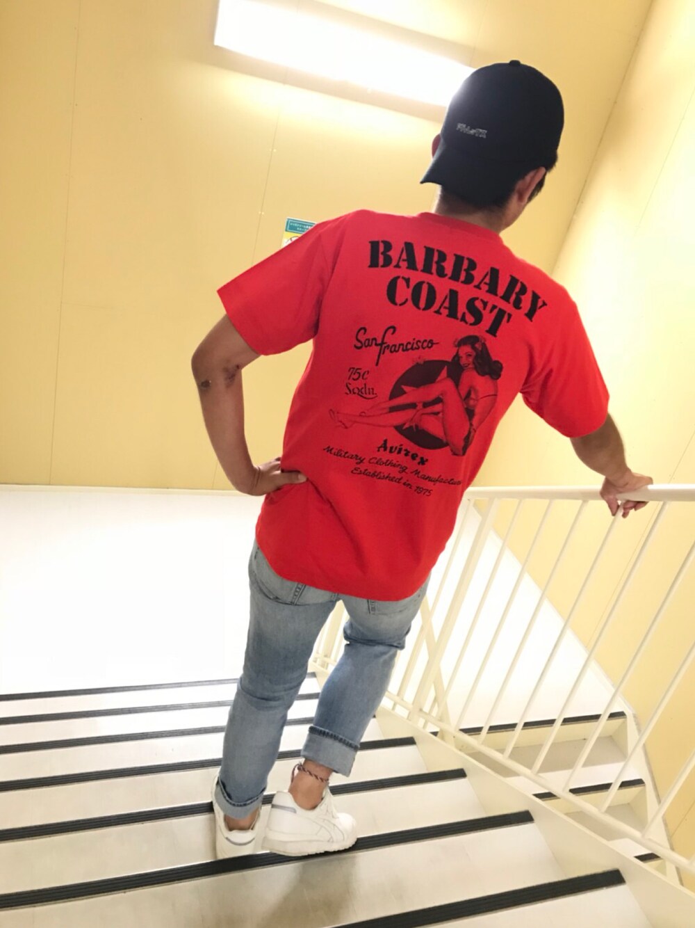 こんにちは! 今回はスッキリとした格好でインパクト強めに着てみました🤞 背中にあるロゴがなんとも言えない渋さになってます☺️ AVIREX DEPOT長島店でお待ちしてます!