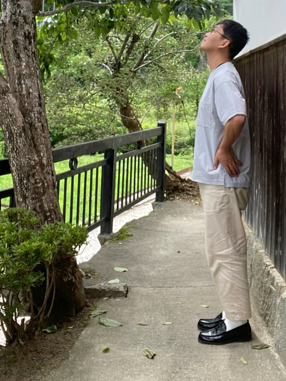 Tシャツ ワイドパンツ ローファー ワイドパンツが麻素材で涼しいです。