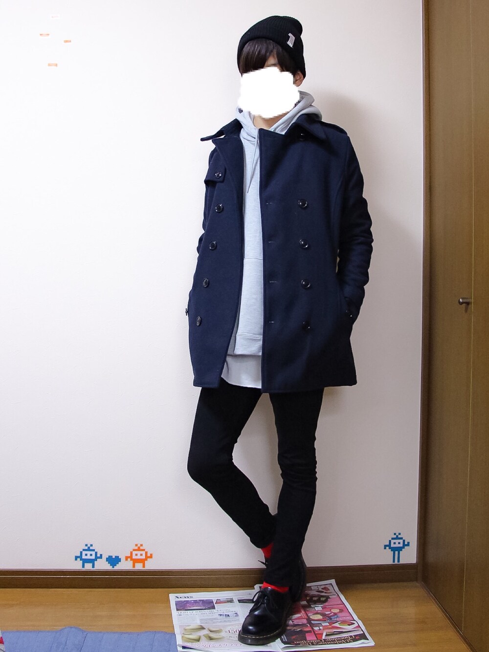 おはようございます🙂☀ 久しぶりにパーカー&ニット帽 髪のセットせんでええから楽ちん なんか襟立ってますね、撮ってから気づきました😳 今日は割とカジュアルかも 色が全体的に落ち着いてたので靴下を赤にしました(*´-`)