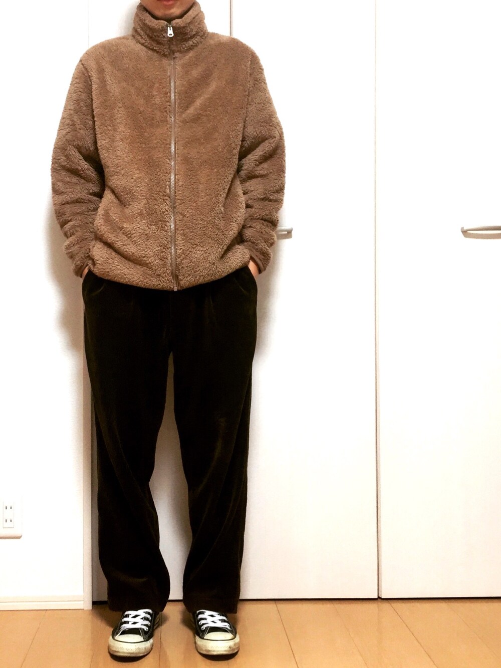 ユニクロのフリース ブラウンのコーデュロイパンツ コンバース