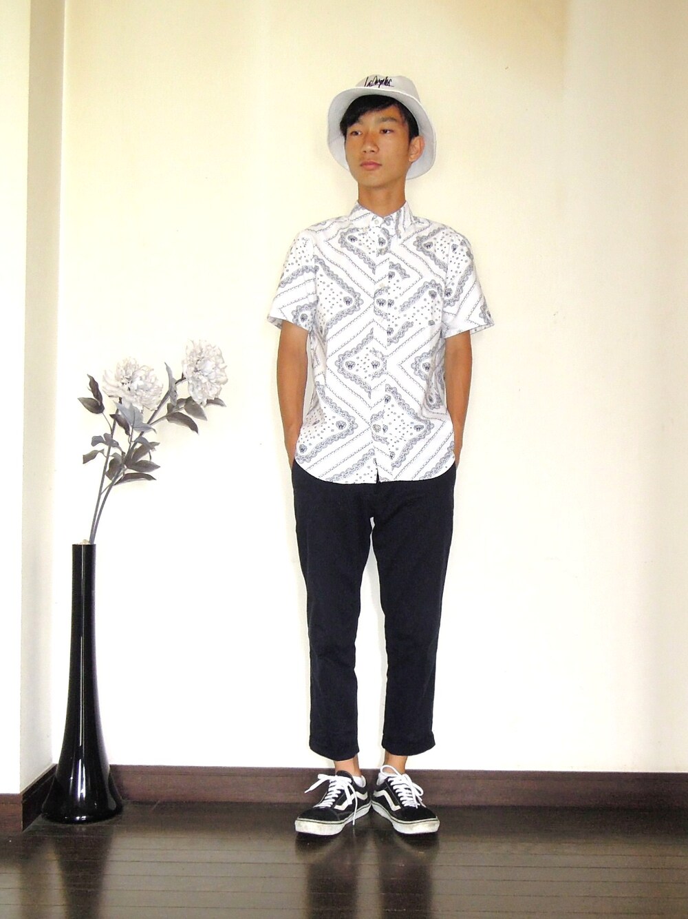 ペイズリー柄のコーデしてみました! 最近いつもこんなかんじです(^^ゞ ふぉろー等していってください(^^) バケットハット(ユニクロ) ペイズリシャツ(ローリーズファーム) パンツ(ユニクロ) スニーカ(VANS)