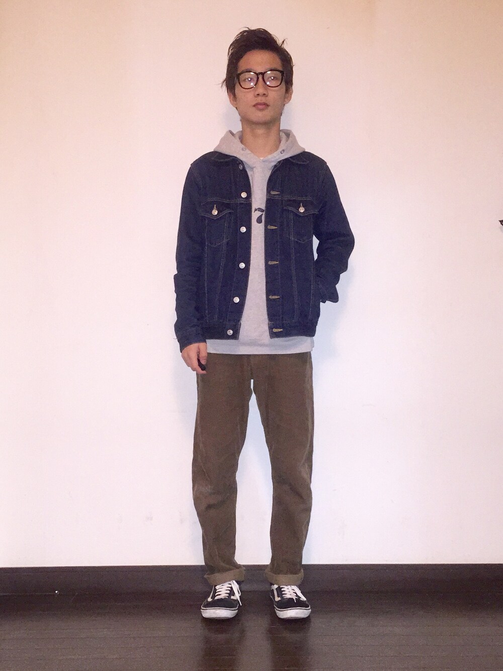 デニムジャケットにブラウンのパンツで古着ぽくしてみました! コメント セーブまってます!♪(v^_^)v