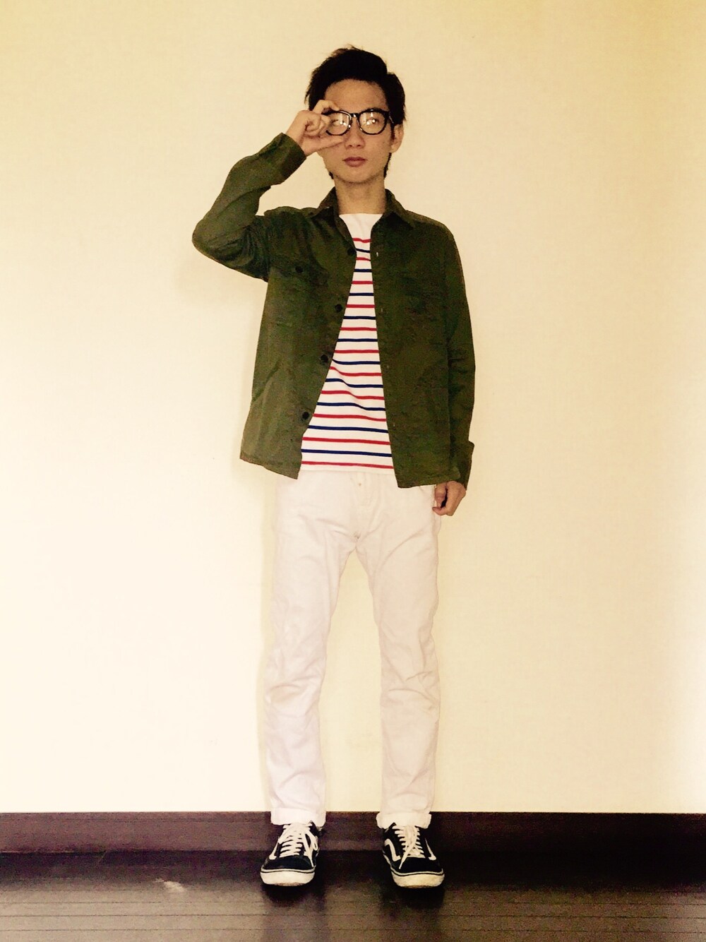 ミリタリーシャツに春らしく白パン合わせてみました!(*゚▽゚)ノ