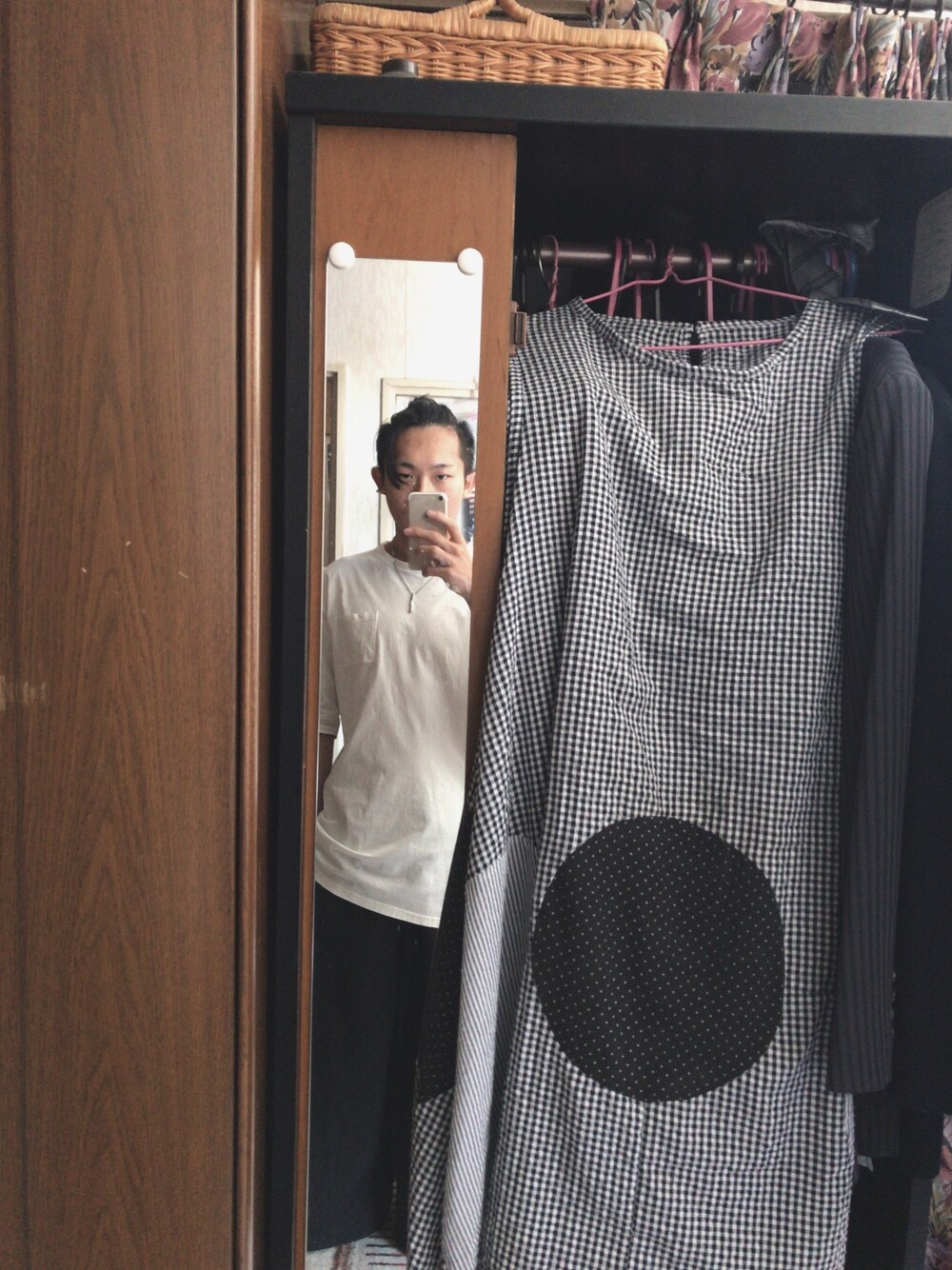 コロナ自粛中のラフファッション 今日は貰い物の白TにFUNKY FRUITSのワイドパンツを合わせました トップスの白Tは着丈が長く、サイドにスリットが入っているのでスッキリした印象を与えられます パンツのワイドパンツは下に行くほど、幅が広がるフレアシルエットのワイドパンツです この上下を合わせることによって、ラフな印象を与えつつも、身長が高く見せることができます