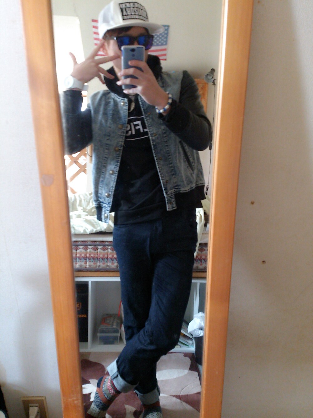 春物のパーカーに見た目厚そうで厚くないスタジャンを重ねて春使用にしてみましたd(^-^) 全体的にちょっとヤングマンのような雰囲気でこーでしてみました(笑)