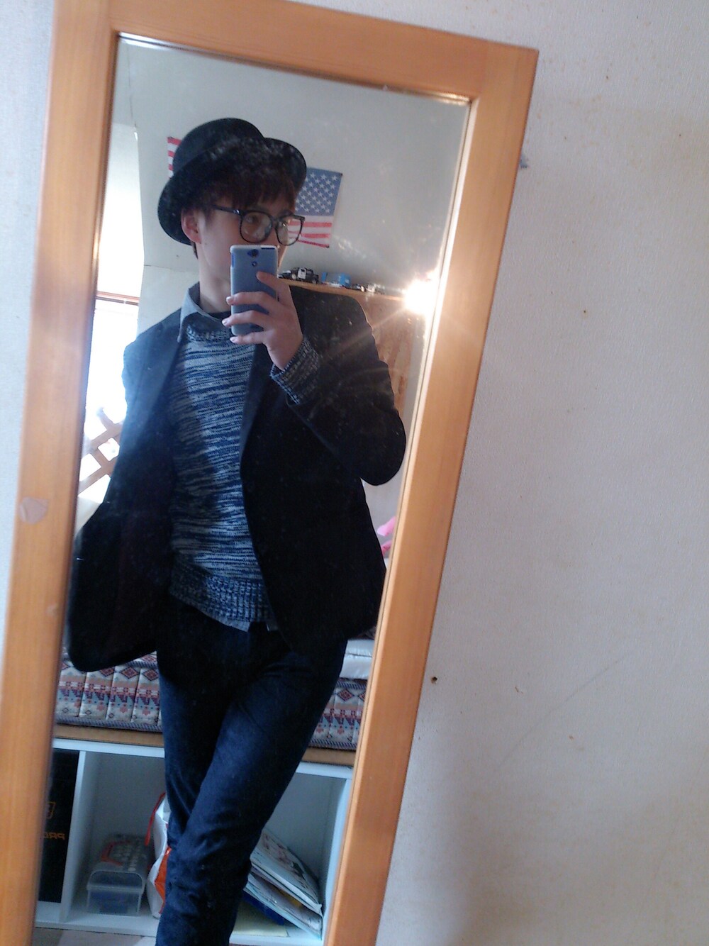 普段、かぶらないハットに丸メガネ。 レトロな雰囲気を少し出してみましたd(^-^) 大阪なので楽しみます(*^^*)
