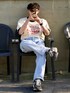 ごりゅーのTシャツ/カットソー「ヴィンテージライクロゴデザイン ビッグシルエットリンガー半袖Tシャツ」を使ったコーディネート