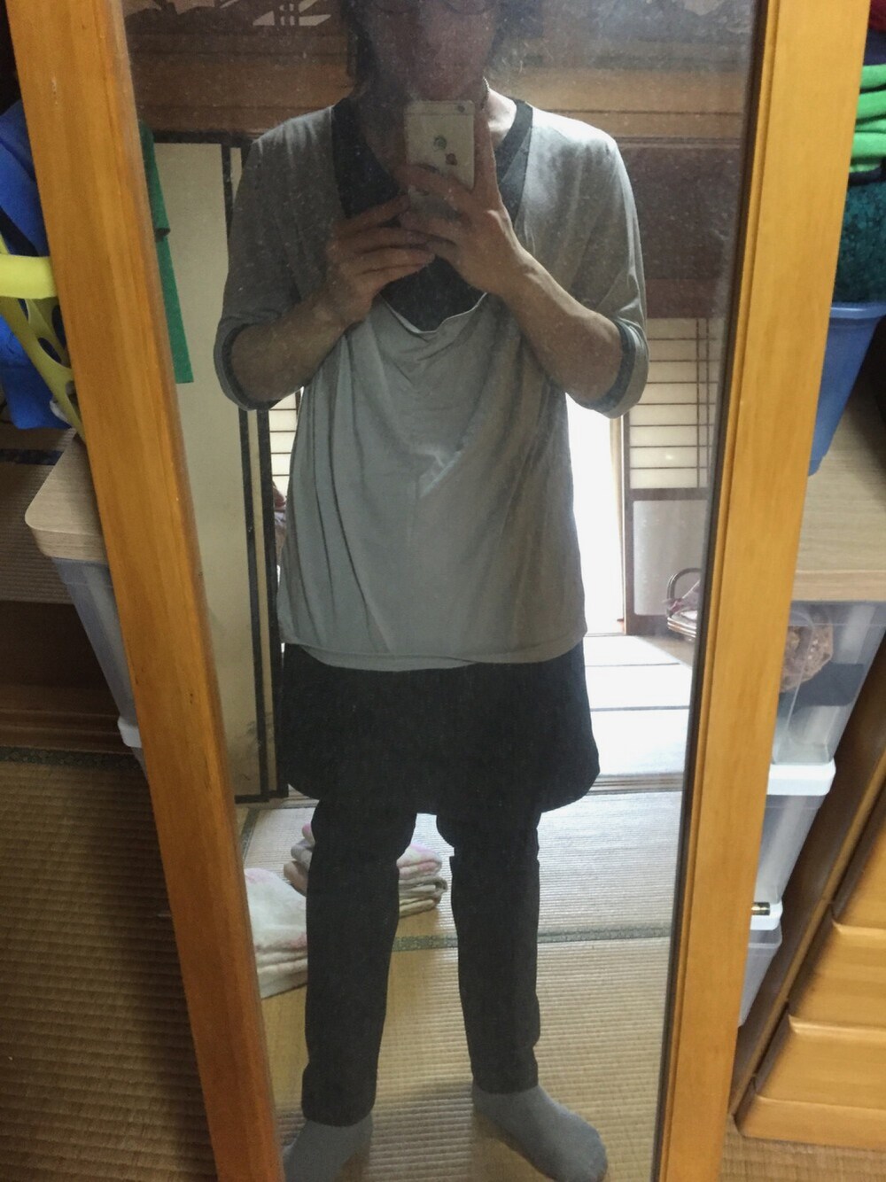 albinoのスカートレギンスに、いつ買ったかわからないフェイクレイヤードを合わせてみました(=゚ω゚)ノ笑笑