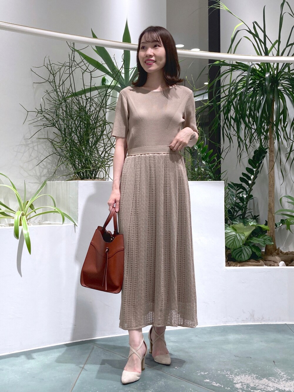 nabe(Andemiu ルミネ有楽町)のワンピース「スカシガラフレアニットワンピース217919」を使ったコーディネート