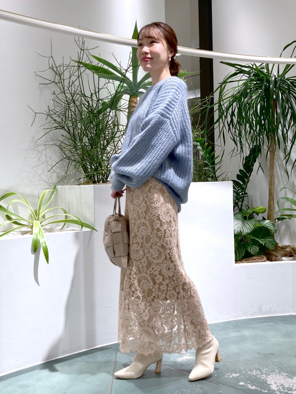 ゆるニット×レーススカートのデートコーデ🥰 ゆったりシルエットが可愛いニットに、透け感のあるレーススカートで軽さをON🥺