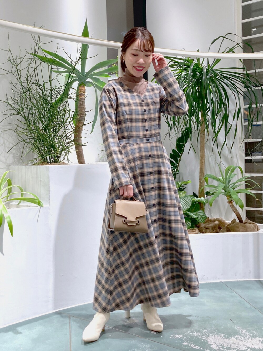 チェックワンピースをレイヤードで👗 カットソーをレイヤードしてカジュアルに仕上げたスタイリング😊 デートから女子会まで幅広いシーンにおすすめです💐