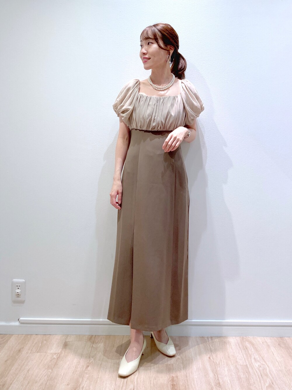 セミオケージョンドレスが入荷しました😊 オフショルダーにして印象の違いを楽しめます◎ シフォンとタイトのメリハリシルエットが女性らしい1着。