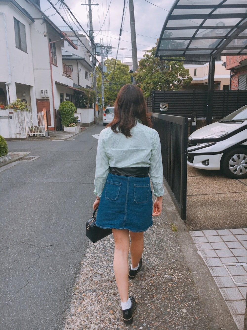poloのカッターシャツ。 緑ストライプ春にぴったりです◎ ベルトがとてつもなくカワイイです。