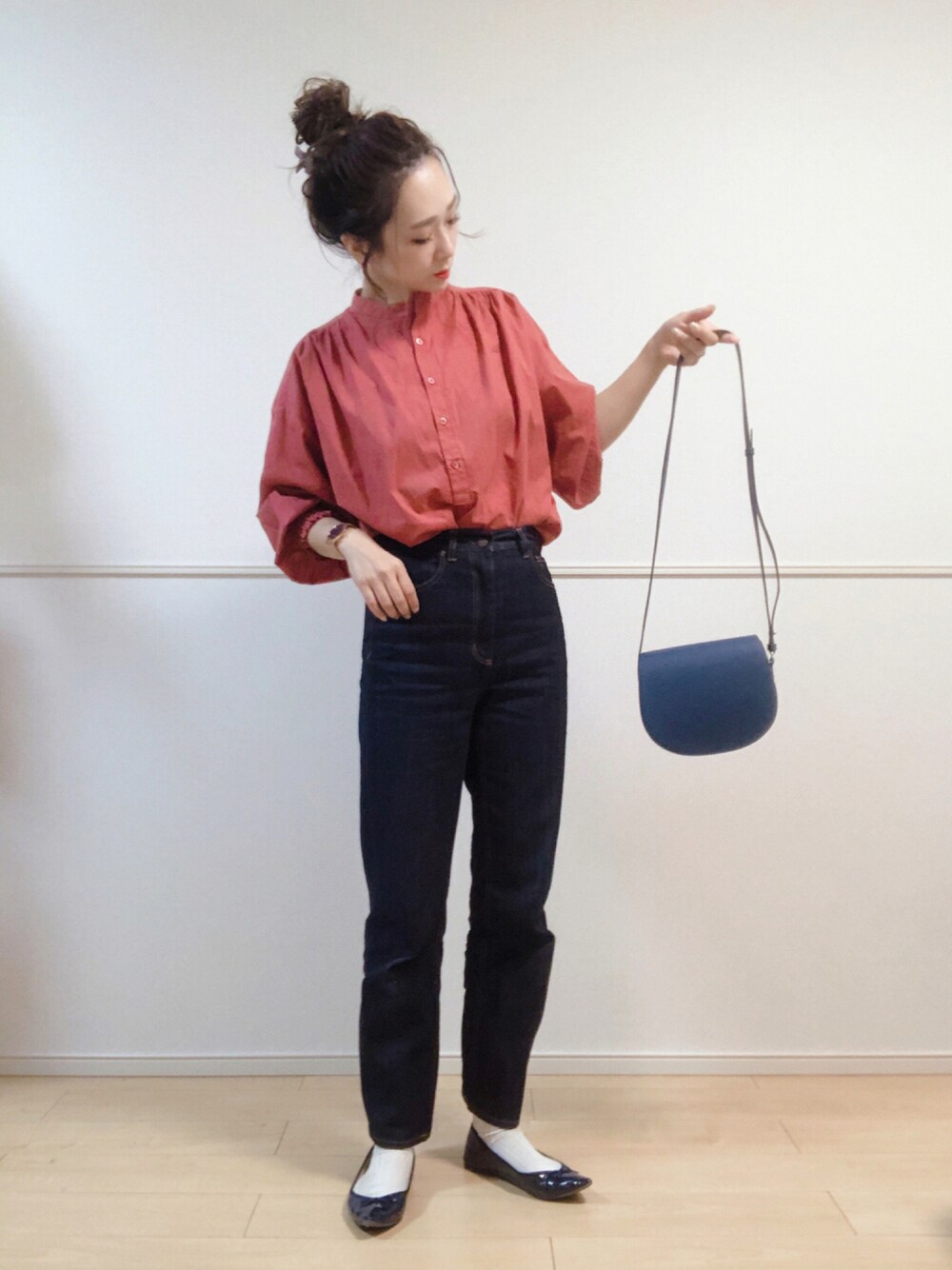 ご覧いただきありがとうございます☺🙏 いいね、save、フォルダinありがとうございます😭いつも嬉しく思います😢 ┈┈┈┈┈┈┈┈┈┈ 今日はUNIQLOで見つけたくすみオレンジが秋っぽいコットンギャザーチュニックをシンプルにコーデしました。 オレンジっていってもブラウンなようなコーラルオレンジでインディゴデニムと相性が良さそうだったので、丈長いですが全部ギュッと入れてスタイリングしました☺🍊肩にギャザーと袖にボリュームがあるのでとっても可愛くて女性らしいデザインです。 GUのハイウエストマムジーンズはやや丸みがあって脚長効果抜群です。UNIQLO、GUコーデでもわからないようなアイテム達です☺