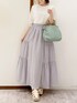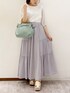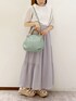 . . 落ち着いた色味のコーデに Mintカラーのバッグを差し色に🌱.。 . . 低身長でロングスカートの丈感が気になるので… 厚底サンダルで合わせてみました ◎ . .