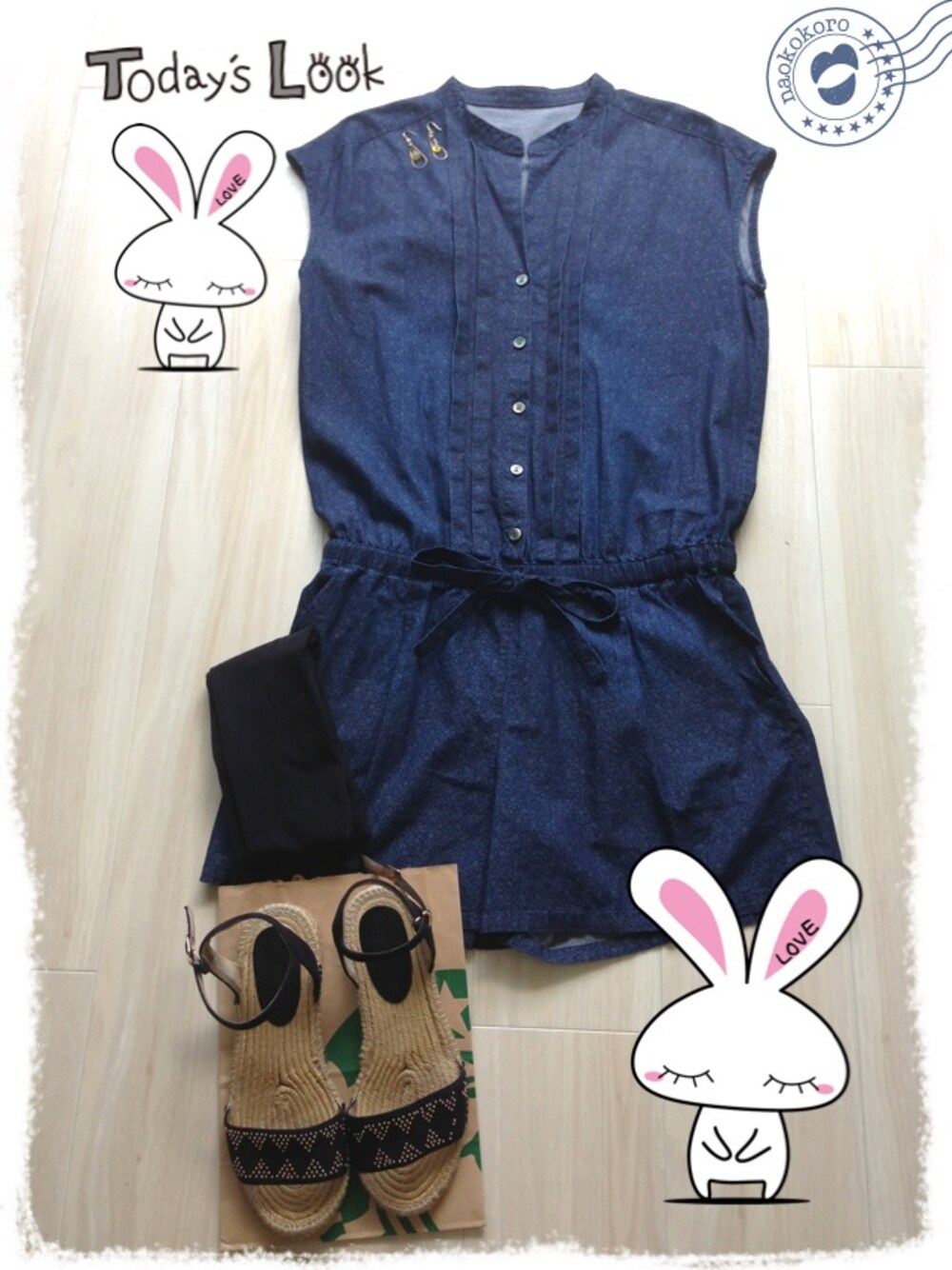 アルバイト 13日目コーデ オールインワン/spick and span サンダル/ORiental TRaffic さらりとヒールで着たいけど我慢して、 接客業なのでレギンスをプラス(。-_-。) かわりに華奢ゴールドアクセつけました🎶