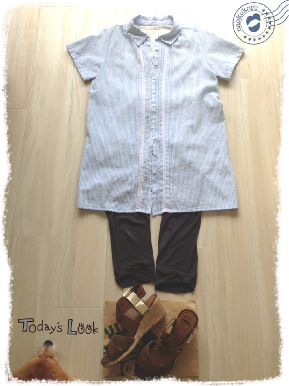 アルバイト 33日目コーデ シャツワンピ/E hyphen world gallary レギンス/フェリシモ サンダル/GU 昨日1日を終えて写真を撮るとしわしわでした◟( ‾᷅⚰‾᷄ ) レギンスは裾がリボンになってます。 左下になにかいますね•••( ‾᷄ᵋ ‾᷅ * )