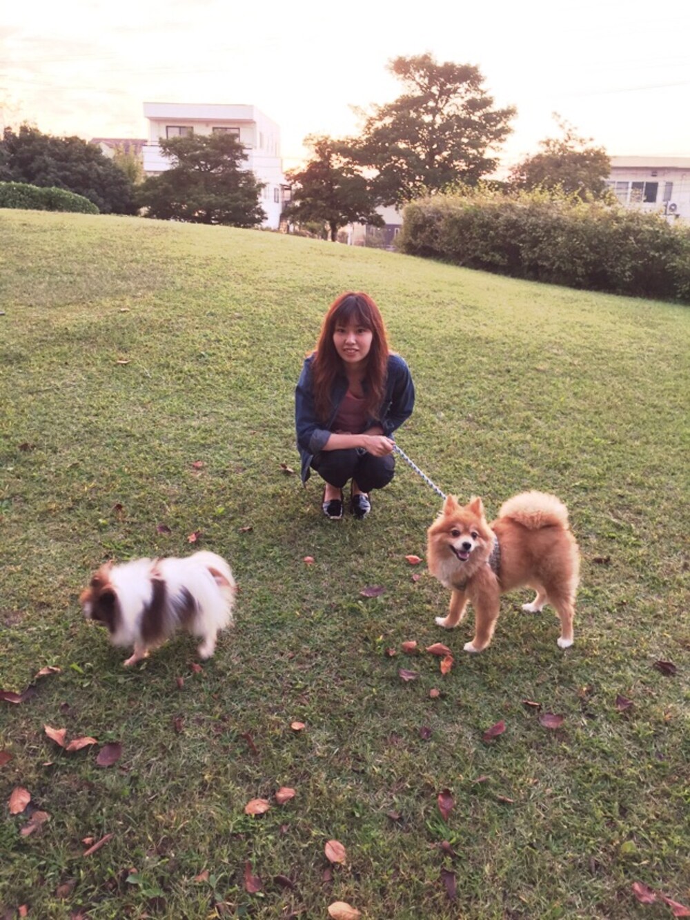 アルバイト 71日目コーデ コーデが見にくくてすみません 。゚(゚´ω`゚)゚。 やっと3ショットが撮れたのでお披露目です♡ 仕事後近くの公園にみんなで散歩に行きました。 たぬきはカメラ目線もバッチリ (﹡ˆωˆ﹡) 右がポメラニアンのたぬき。7.4kg。 左がポメラニアンのはる。2kg。 コノサハナンダ•••••••••ฅ(º ロ º ฅ) 笑 たぬきは一人暮らし時代から一緒、はるは保護犬の一時預かり中( 里親募集中‼︎ )です。 でも一緒に暮らしているからには皆家族 (ˊ•̤ω•̤ˋ) 先週たて続けに体調を崩したりと大変な事もありますが、みんなの様子を見守る事が私の1番の幸せです♡