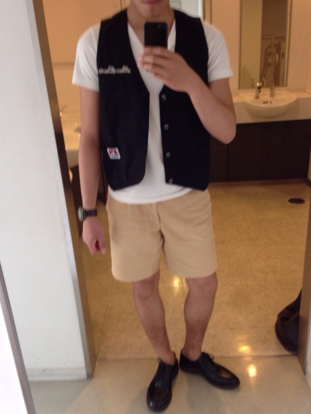 Tシャツ:wjk ベスト:BEN DAVIS コーディロイショーツ:アダムエロペ シューズ:グリーンレーベル