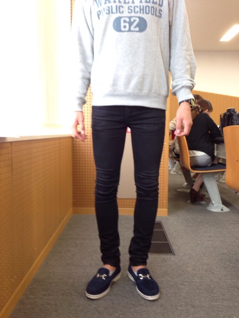 スウェット:チャンピオン デニム:ヌーディージーンズ シューズ:フランチェスコ