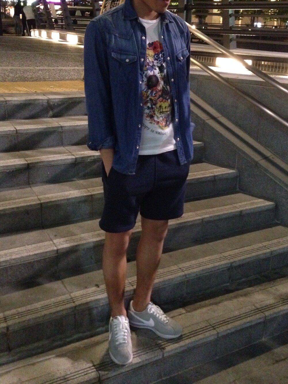 シャツ:gu Tシャツ:アーバンリサーチ ショーツ:H&M 靴:ナイキ コルテッツ